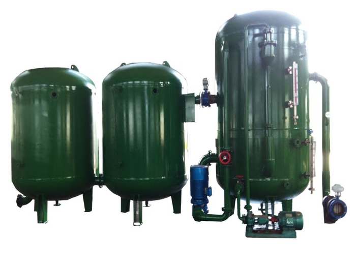 二、 向您推薦的除氧器→新型旋膜式除氧器: 旋膜除氧器--旋膜式除氧器(又稱膜式除氧器及水膜式除氧器)是一種新型熱力除氧器,是用汽輪機(jī)抽汽將鍋爐給水加熱到對應(yīng)除氧下的飽和溫度,除去溶解于給水的氧及其它氣體,防止和降低鍋爐給水管--省煤器和其它附屬設(shè)備的腐蝕.可用于定壓、滑壓等方式運(yùn)行,并且具有運(yùn)行穩(wěn)定,除氧效率高,適應(yīng)性能好等特點(diǎn).適用于各類電力系統(tǒng)鍋爐、工業(yè)鍋爐給水及熱電廠補(bǔ)給水的除氧。滑壓運(yùn)行鍋爐我公司可以另行設(shè)計(jì),保證鍋爐始終保持在對應(yīng)除氧下的飽和溫度,除氧工藝安全穩(wěn)定。