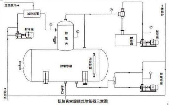 3、兩階段被除去的氧和二氧化碳等氣體隨蒸汽均勻上升至除氧器頂部的排氣管排向大氣,達(dá)到要求的除氧水匯集于除氧器水箱中。